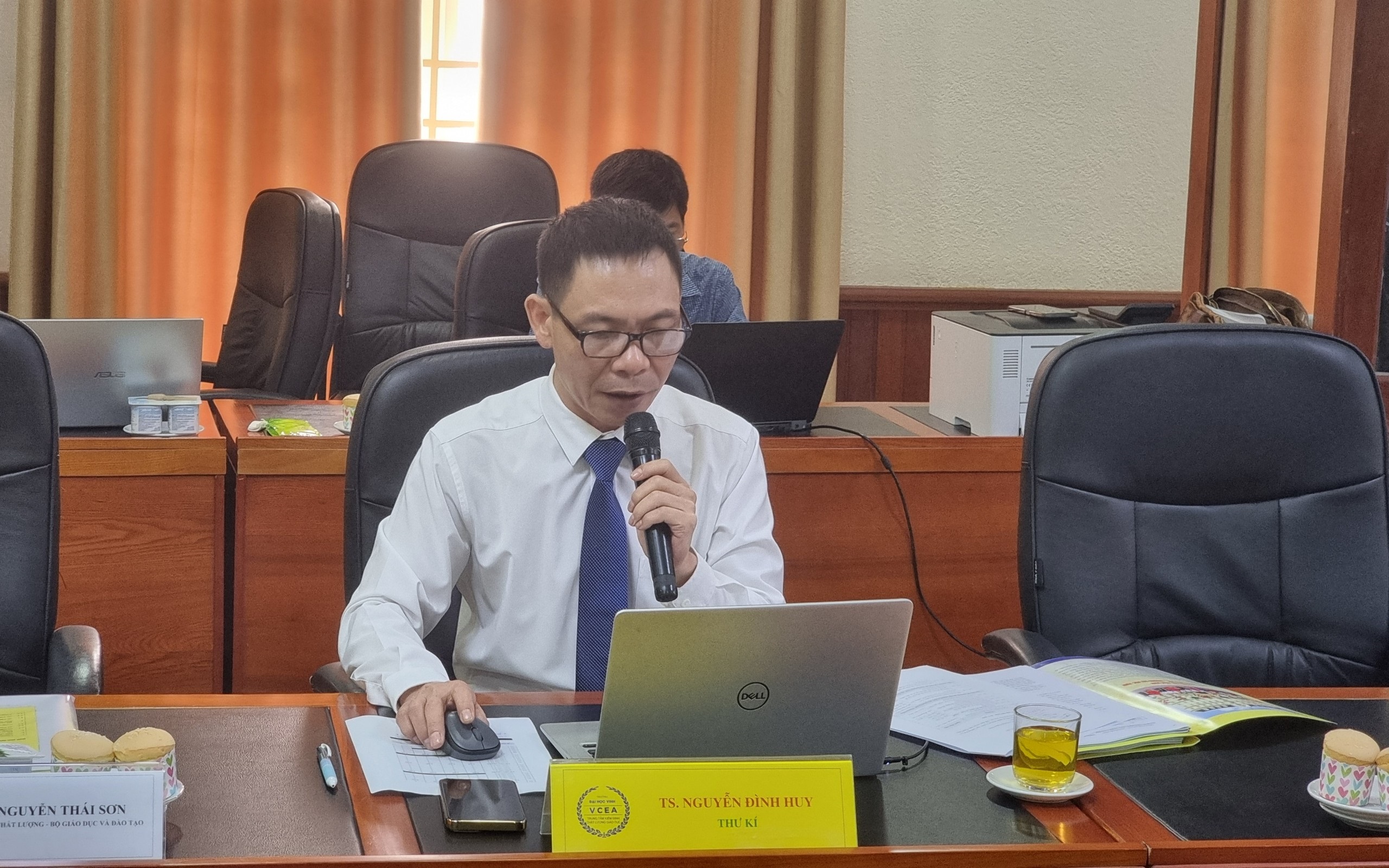 Sau Phiên khai mạc, Hội động kiểm định chất lượng giáo dục có phiên họp riêng để thống nhất nội dung và phương thức làm việc của Hội đồng. TS. Nguyễn Đình Huy - Phó giám đốc Trung tâm, Thư kí Hội đồng đã thay mặt Tiểu ban Chuyên môn báo cáo tóm tắt quá trình và kết quả tự đánh giá và đánh giá ngoài của các CTĐT đang được thẩm định và xét công nhận kết quả lần này.