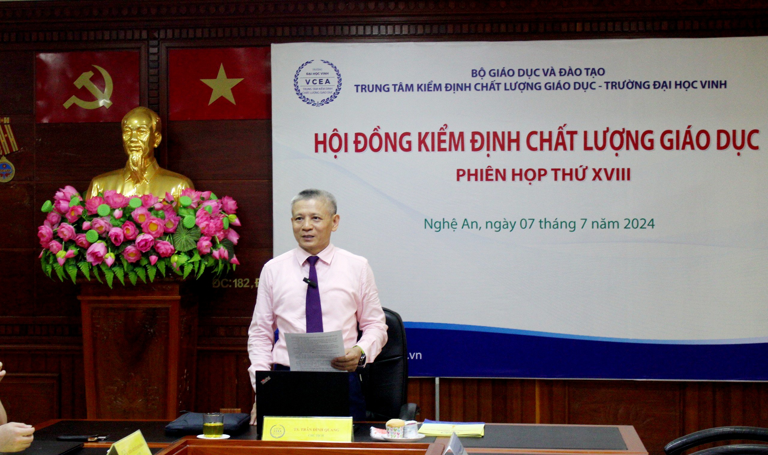Vào ngày 07/7/2024, Trung tâm Kiểm định chất lượng giáo dục - Trường Đại học Vinh (Trung tâm) đã tổ chức phiên họp lần thứ 18 của Hội đồng kiểm định chất lượng giáo dục.