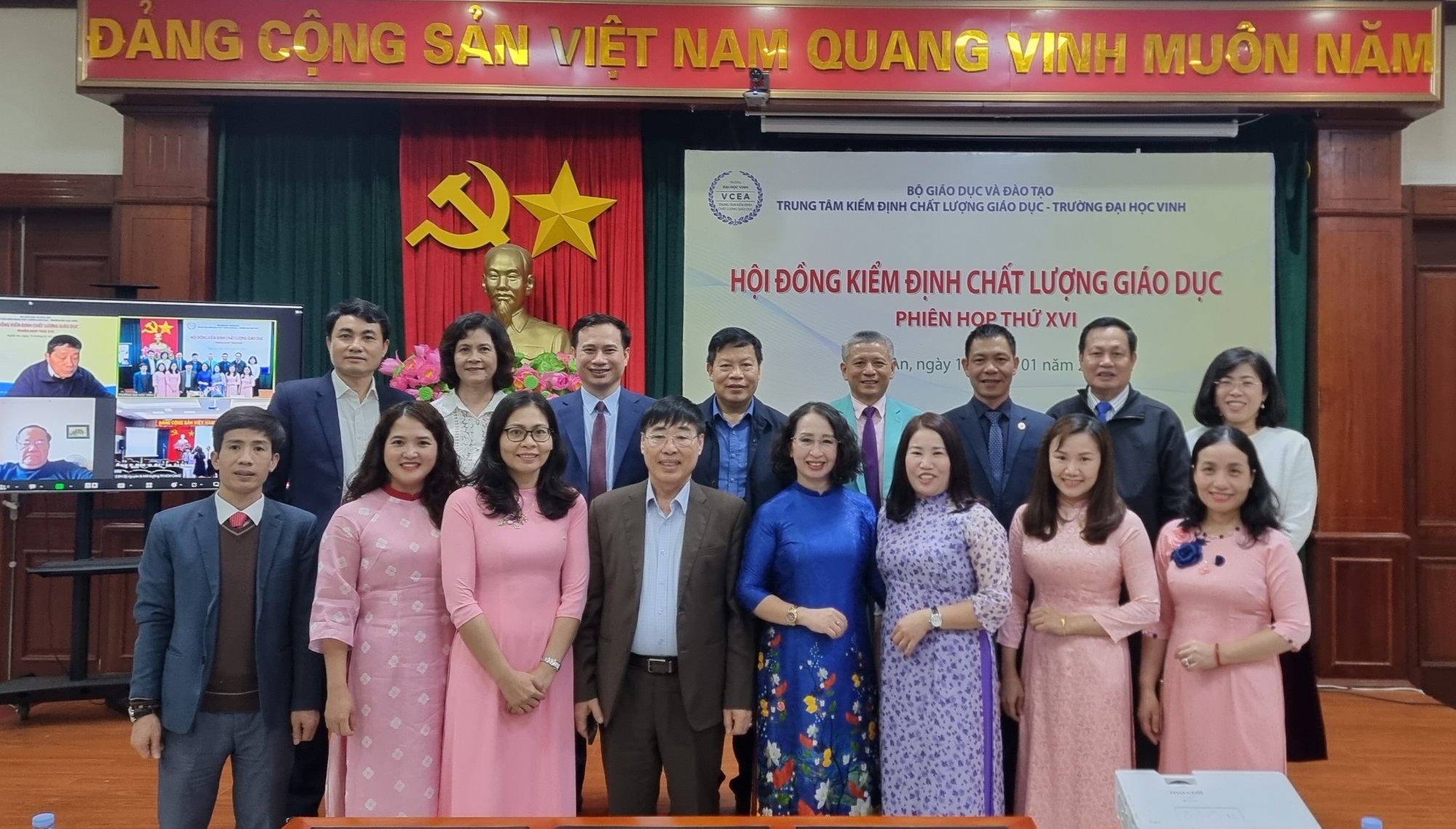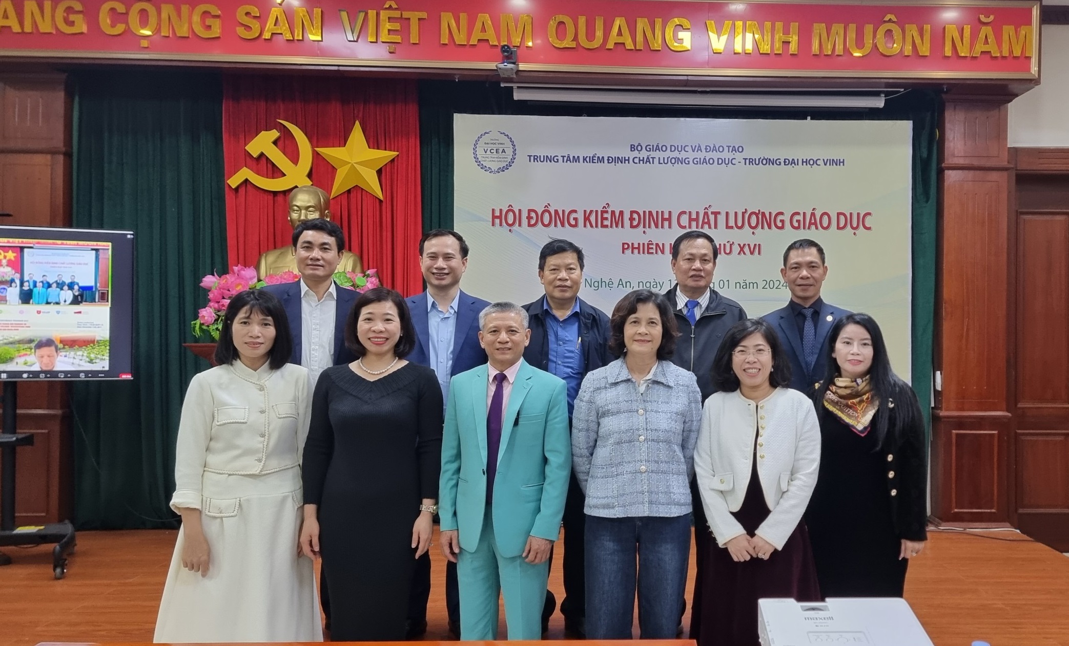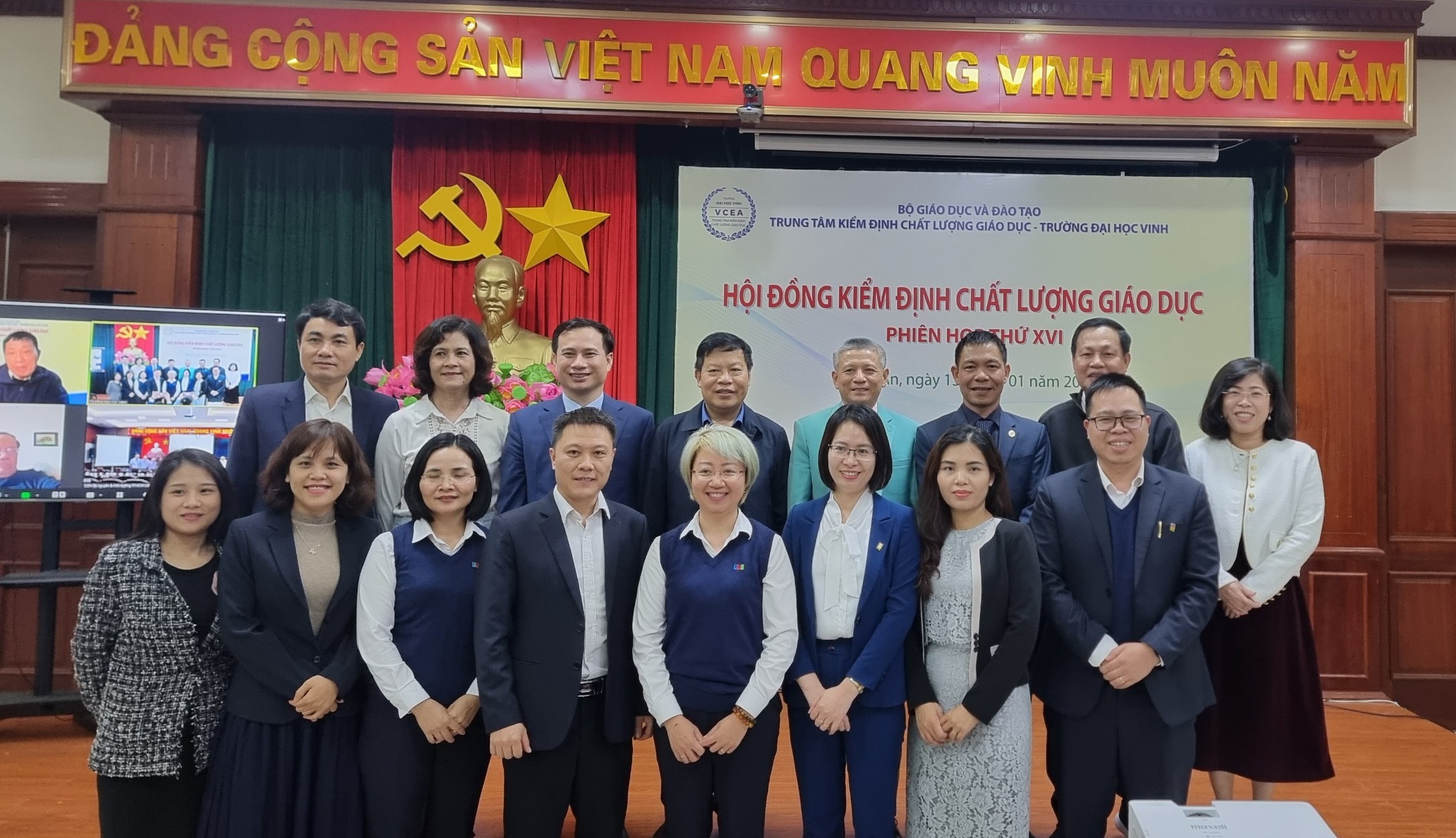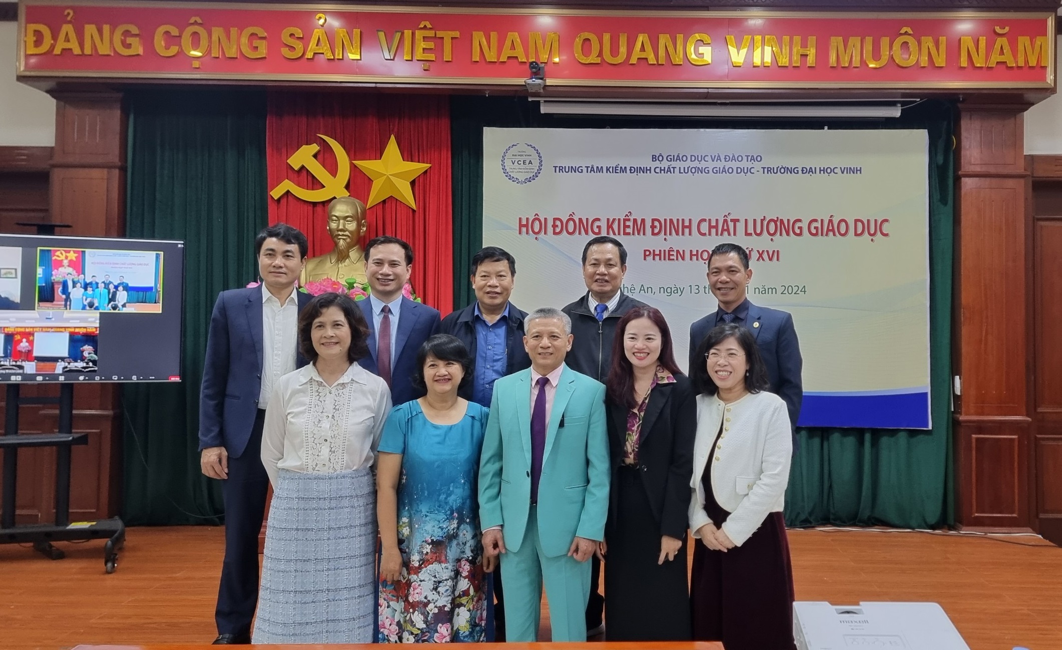 Vào ngày 13/01/2024, Trung tâm Kiểm định chất lượng giáo dục - Trường Đại học Vinh (Trung tâm) đã tổ chức phiên họp lần thứ 16 của Hội đồng kiểm định chất lượng giáo dục. Mục tiêu của cuộc họp này là thẩm định kết quả đánh giá chất lượng cho 02 cơ sở giáo dục (CSGD) và 13 chương trình đào tạo (CTĐT) thuộc 04 cơ sở giáo dục. Cuộc họp đã được tổ chức theo hình thức kết hợp, bao gồm cả giao tiếp trực tiếp và trực tuyến.