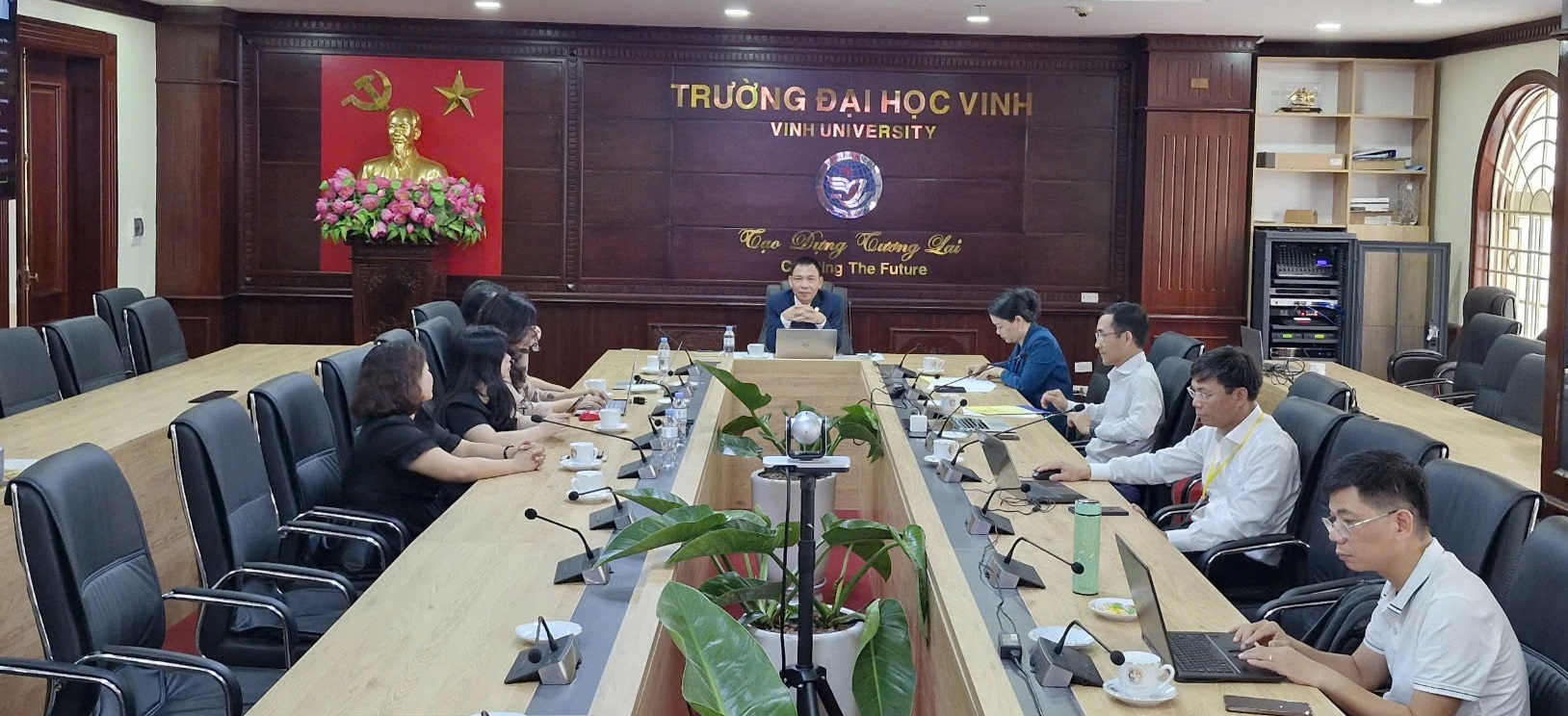 Về phía Trung tâm và Đoàn ĐGN có GS.TSKH. Đặng Ứng Vận – Trưởng đoàn; TS. Nguyễn Đình Huy – Phó Giám đốc Trung tâm KĐCLGD - Thư kí Đoàn; ThS. Giản Hoàng Anh - Giám sát; các thành viên đoàn; cán bộ phòng ban chức năng.