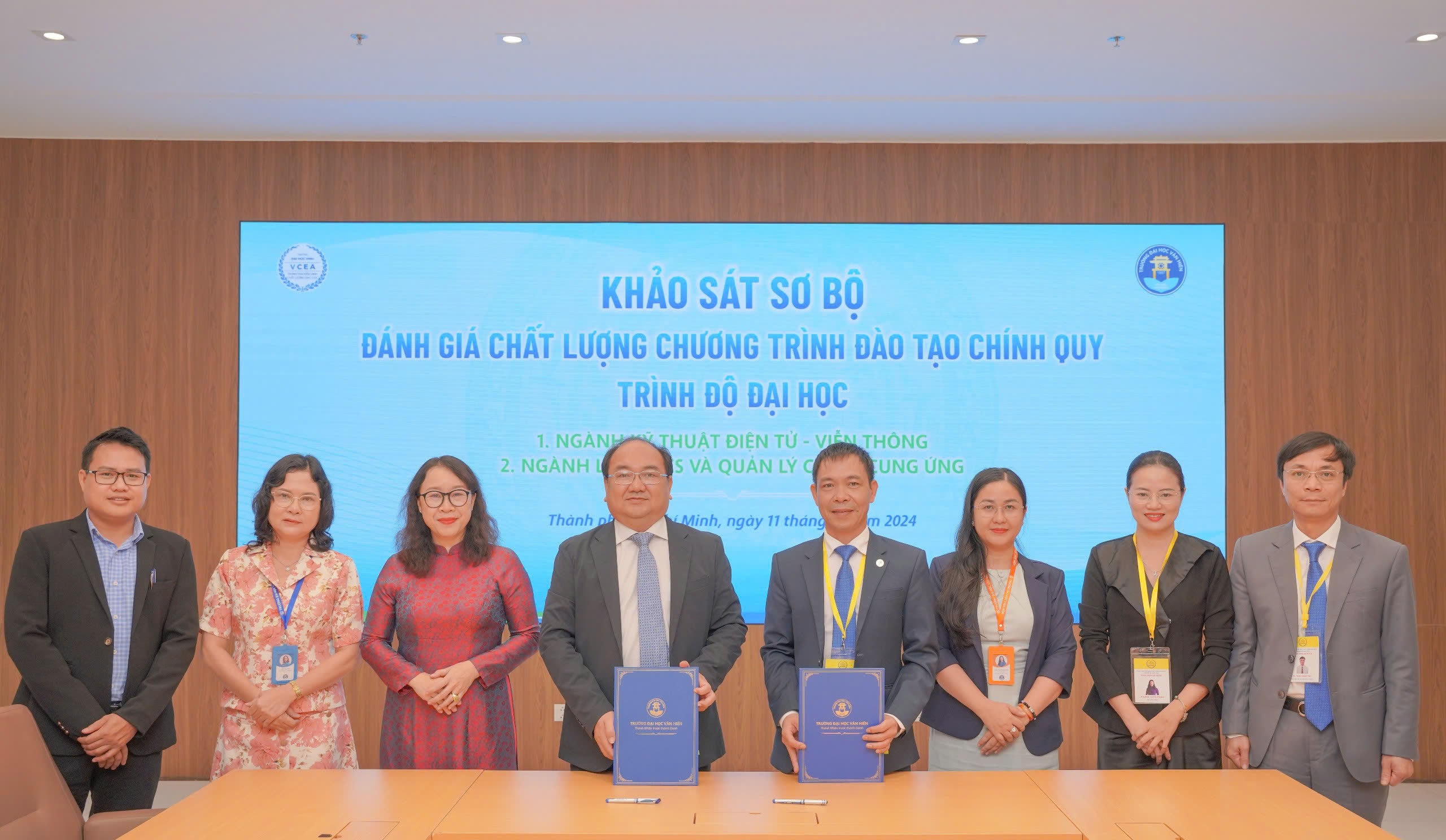 Sáng ngày 11/11/2024, Đoàn đánh giá ngoài (ĐGN) của Trung tâm Kiểm định chất lượng giáo dục - Trường Đại học Vinh (Trung tâm) đã thực hiện khảo sát sơ bộ phục vụ ĐGN 02 chương trình đào tạo ngành: Kỹ thuật điện tử - viễn thông, ngành Logistics và Quản lý chuỗi cung ứng của Trường Đại học Văn Hiến (Nhà trường).