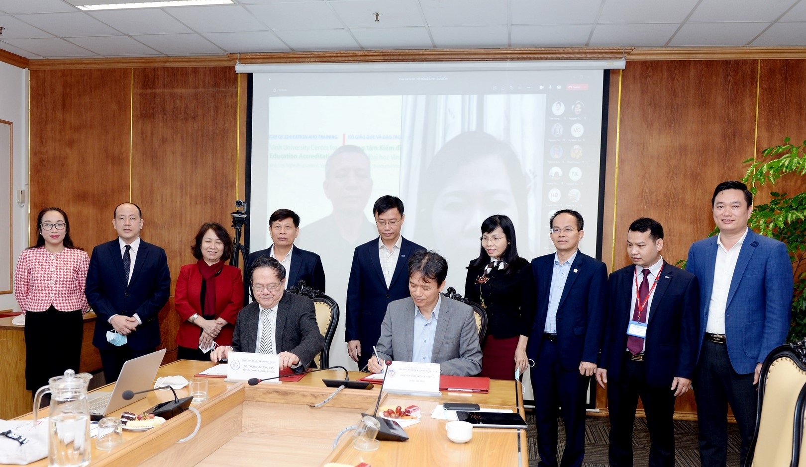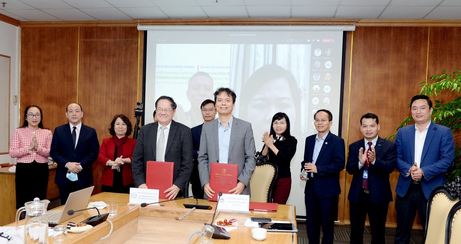Kết thúc buổi làm việc, PGS.TS Phạm Hồng Chương – Hiệu trưởng Đại học Kinh tế Quốc dân và GS.TSKH Đặng Ứng Vận - Trưởng đoàn ĐGN đã ký kết Biên bản ghi nhớ sau khảo sát sơ bộ của Đoàn ĐGN chương trình đào tạo.