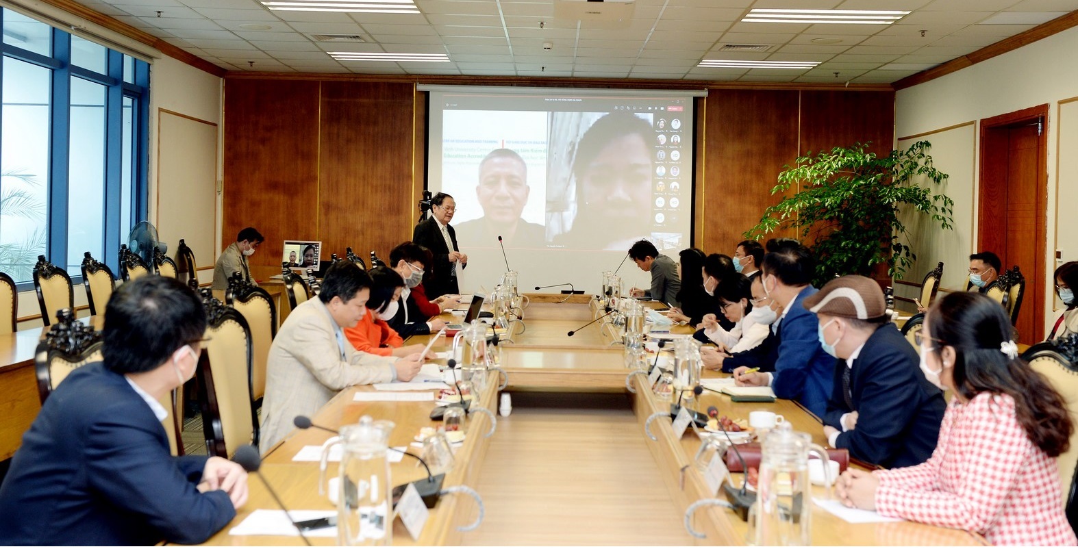 Hoạt động khảo sát sơ bộ diễn ra trong bối cảnh dịch bệnh Covid-19 đang diễn biến phức tạp, tiềm ẩn nhiều nguy cơ bùng phát khó lường. Vì vậy, Trung tâm KĐCLGD-ĐHV, Đoàn ĐGN và Nhà trường đã trao đổi và đi đến thống nhất thực hiện theo hình thức trực tiếp kết hợp trực tuyến.