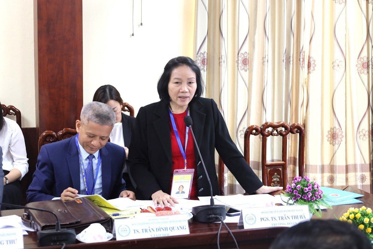 Về phía Đoàn đánh giá ngoài có: PGS.TS. Trần Thị Hà - Trưởng đoàn đánh giá ngoài; TS. Trần Đình Quang - Giám đốc Trung tâm Kiểm định chất lượng giáo dục - Trường Đại học Vinh cùng các thành viên trong Đoàn.