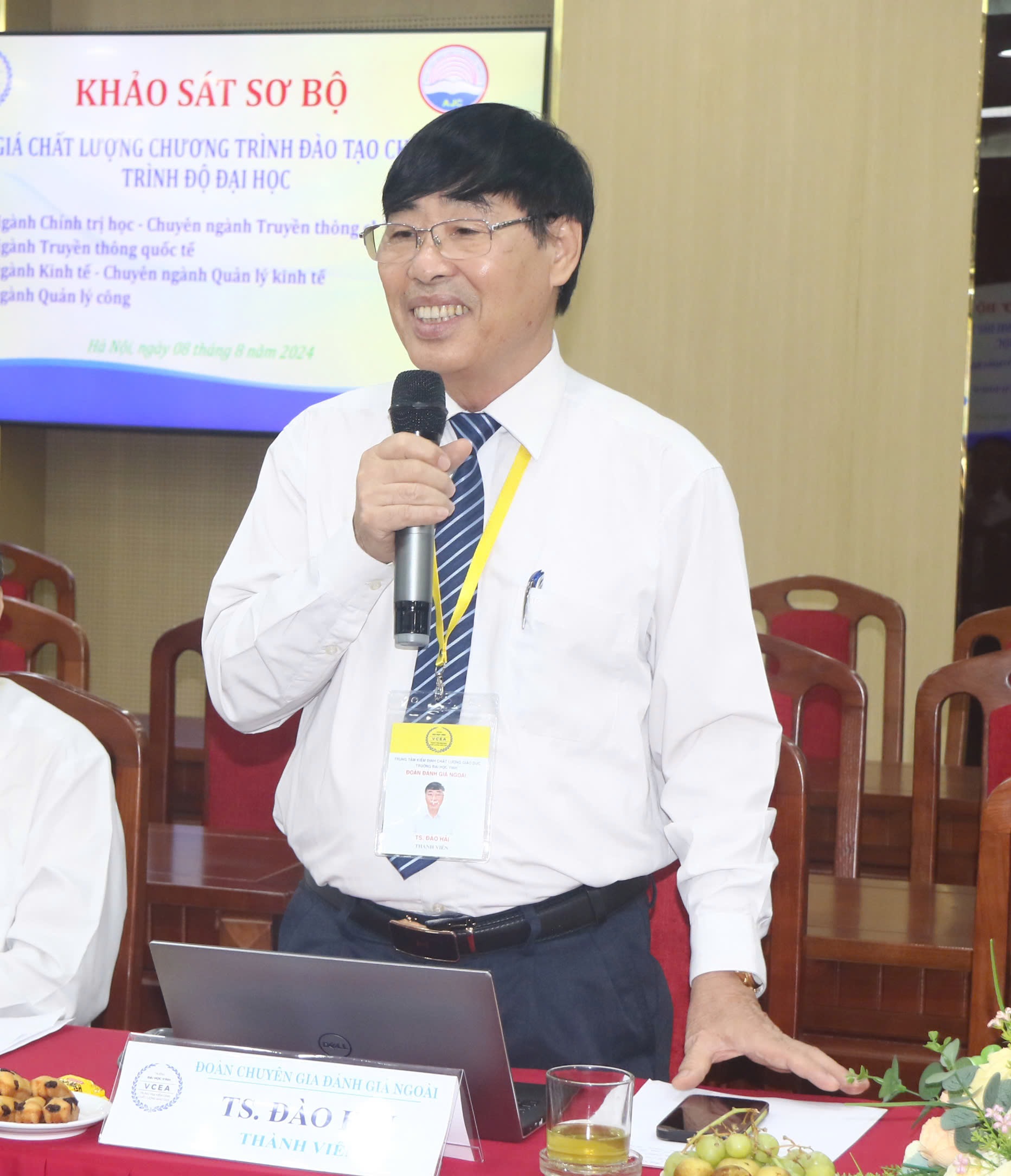 Sáng ngày 08/8/2023, Đoàn đánh giá ngoài (ĐGN) của Trung tâm Kiểm định chất lượng giáo dục - Trường Đại học Vinh (Trung tâm) đã thực hiện khảo sát sơ bộ phục vụ ĐGN 04 chương trình đào tạo trình độ đại học gồm: ngành Chính trị học, chuyên ngành Truyền thông chính sách; ngành Truyền thông quốc tế; ngành Kinh tế, chuyên ngành Quản lý kinh tế; ngành Quản lý công