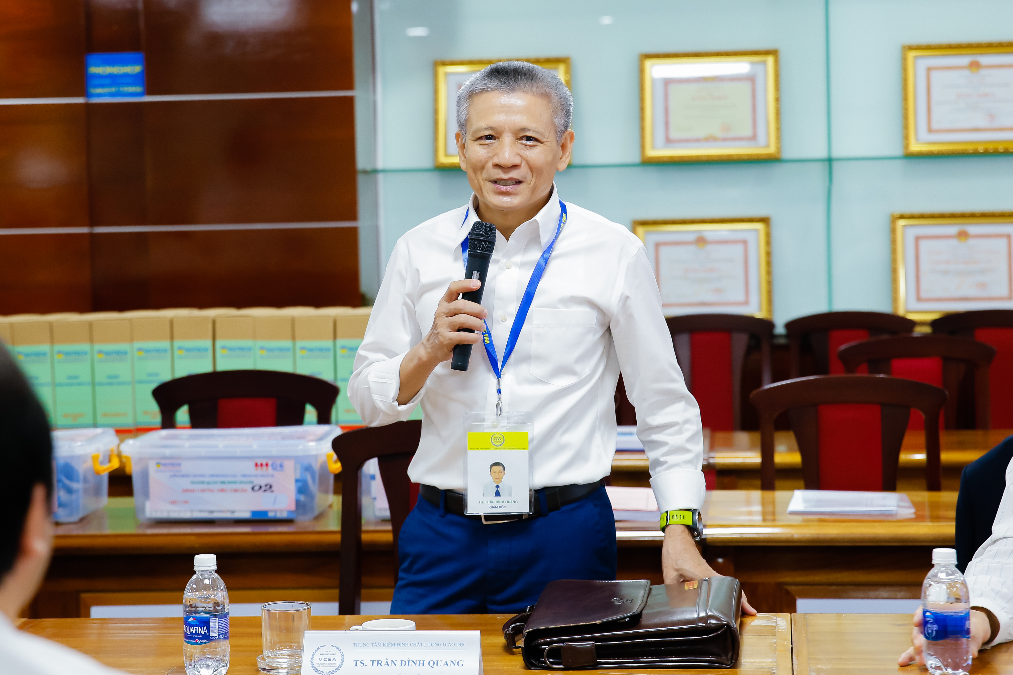 Tham dự đợt khảo sát, về phía Đoàn ĐGN có TS. Trần Đình Quang - Giám đốc TT Kiểm định chất lượng giáo dục - Đại học Vinh, Thành viên thường trực; GS.TS. Mai Trọng Nhuận - Trưởng đoàn ĐGN; TS. Phan Hùng Thư – Thư kí Đoàn.