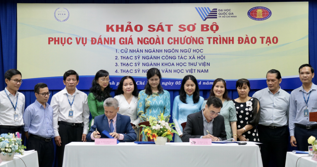 Kết thúc phiên Khảo sát sơ bộ, lãnh đạo Trung tâm và Lãnh đạo Trường Đại học Khoa học Xã hội và Nhân văn, Đại học Quốc gia Thành phố Hồ Chí Minh, Trưởng Đoàn Đánh giá ngoài đã ký Biên bản ghi nhớ hoàn thành khảo sát sơ bộ.