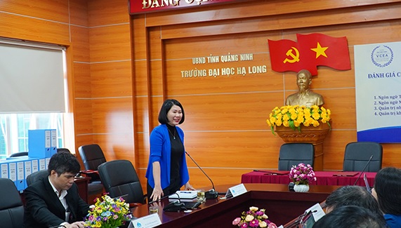 Tiếp đoàn ĐGN, về phía Trường Đại học Hạ Long có: TS. Hoàng Thị Thu Giang – Phó Bí thư Đảng ủy, Phó Hiệu Trưởng Nhà trường; Đại diện các Khoa, Phòng ban chức năng; Hội đồng Tự đánh giá.