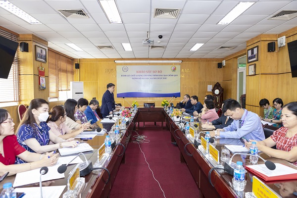 Trong buổi làm việc, TS. Nguyễn Đình Huy đã bày tỏ lòng biết ơn chân thành đối với Lãnh đạo Học viện vì sự tin tưởng và lựa chọn Trung tâm là đơn vị tiến hành đánh giá ngoài cho Học viện lần này. Ông cũng đã trình bày rằng cuộc khảo sát sơ bộ này nhằm mục đích tìm ra những ưu điểm và hạn chế cần khắc phục, nhằm giúp Học viện đạt được sự cải tiến đáng kể và hoàn thiện hồ sơ minh chứng, từ đó đáp ứng đầy đủ các yêu cầu cho đợt khảo sát chính thức và góp phần nâng cao chất lượng đào tạo của Học viện.