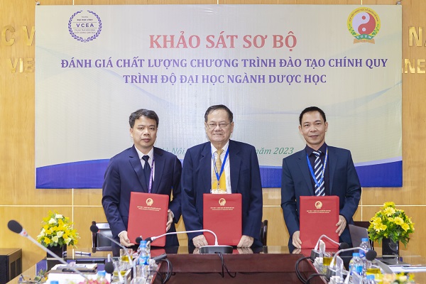 Kết thúc buổi làm việc, Đại diện Học viện Y - Dược học cổ truyền Việt Nam và Đại diện Đoàn đánh giá ngoài và Trung tâm Kiểm định chất lượng giáo dục - Trường Đại học vinh đã kí kết biên bản ghi nhớ sau khảo sát sơ bộ.
