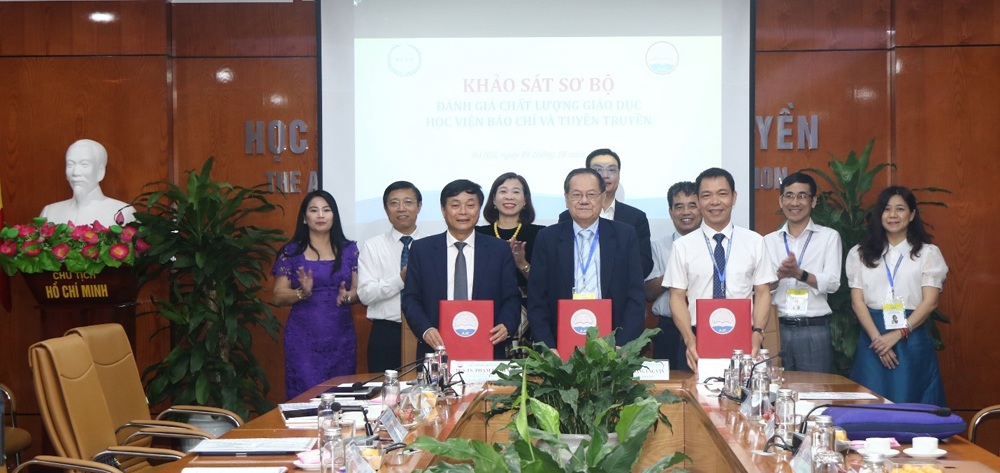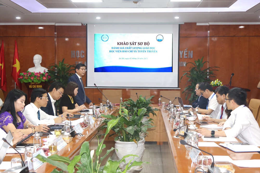 Ngày 01/10/2023, Đoàn đánh giá ngoài (ĐGN) của Trung tâm Kiểm định chất lượng giáo dục - Trường Đại học Vinh (Trung tâm) đã thực hiện khảo sát sơ bộ đánh giá chất lượng Cơ sở giáo dục Học viện Báo chí và Tuyên truyền