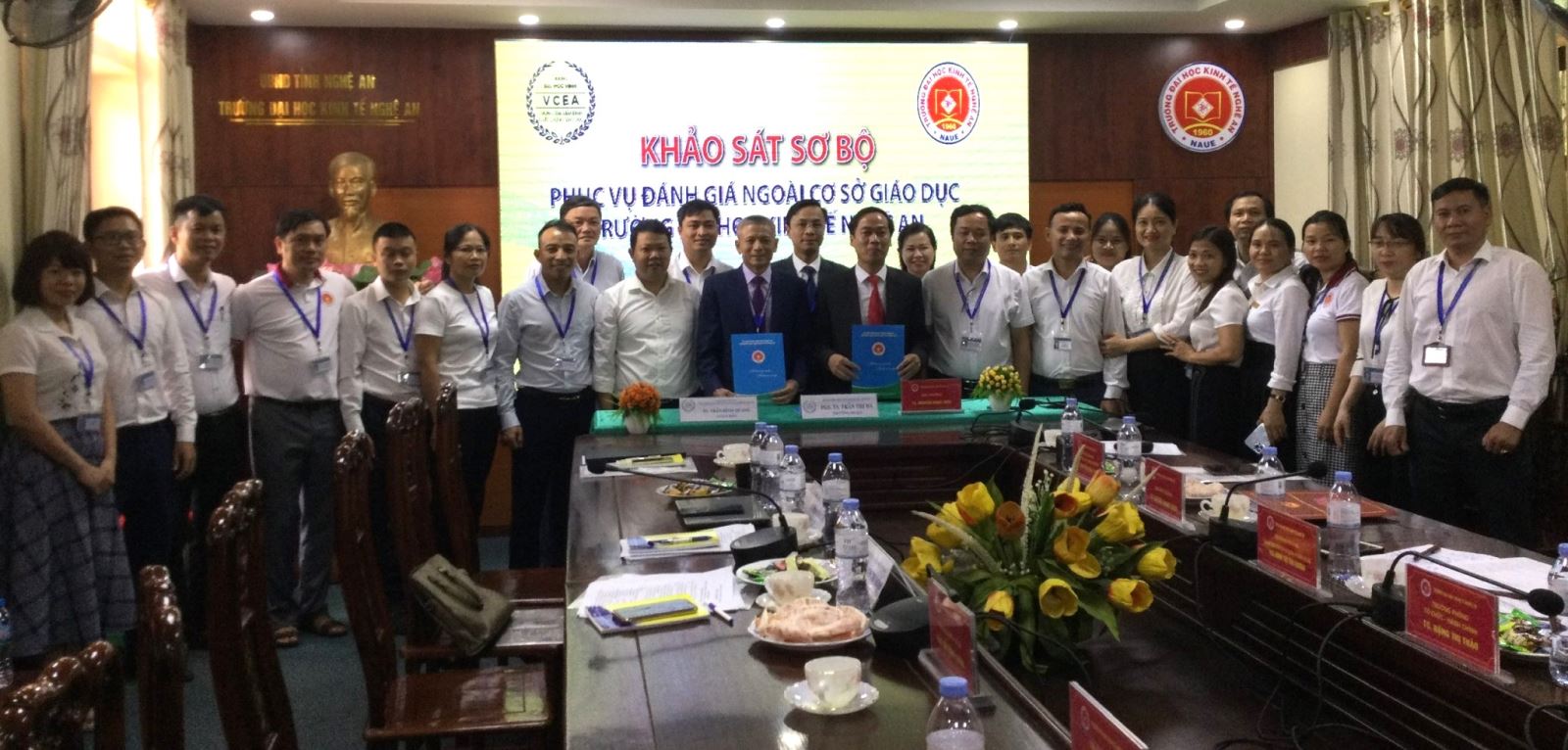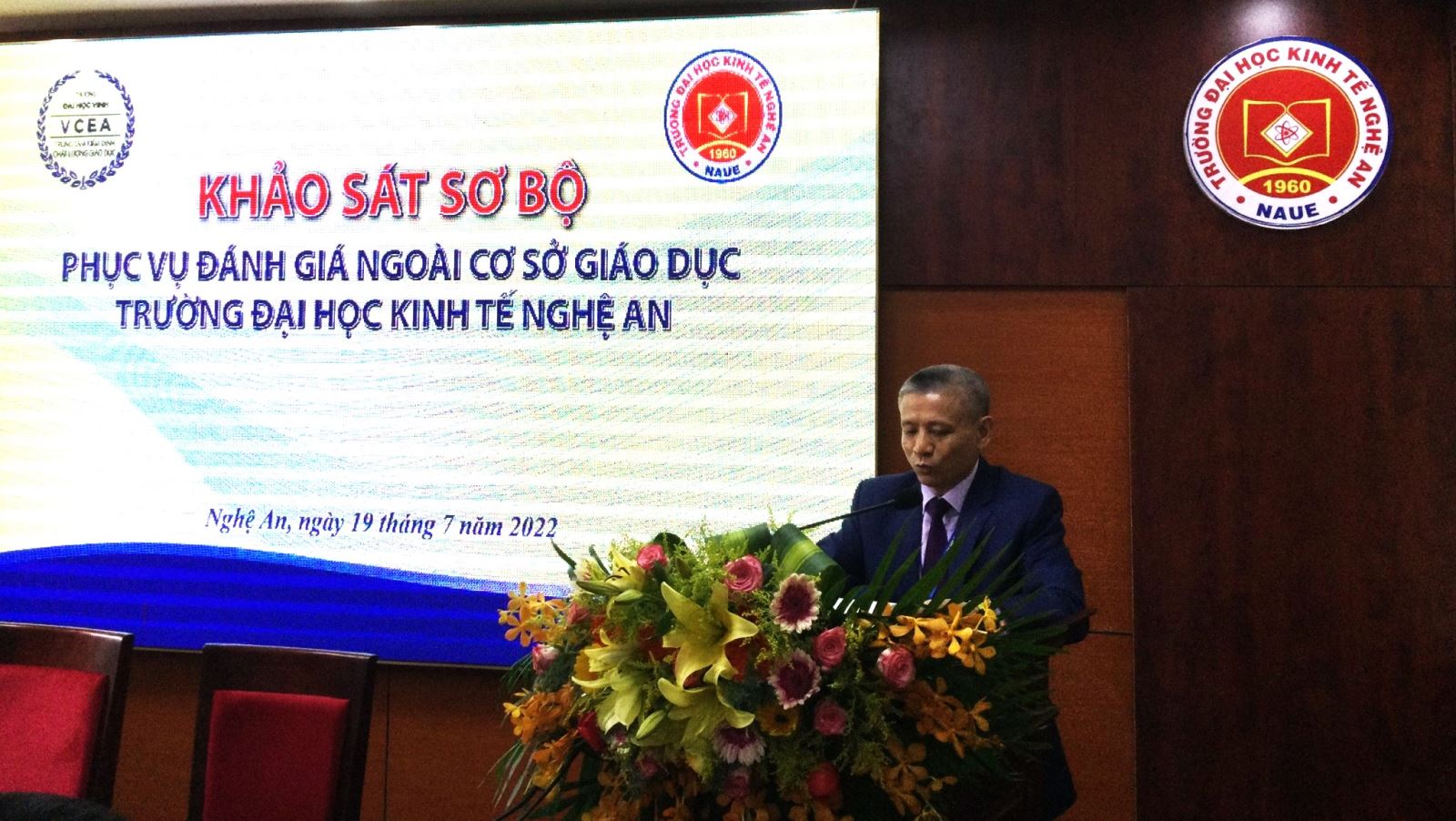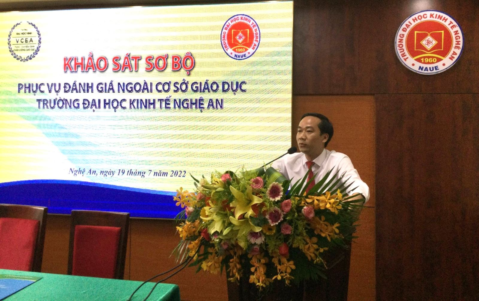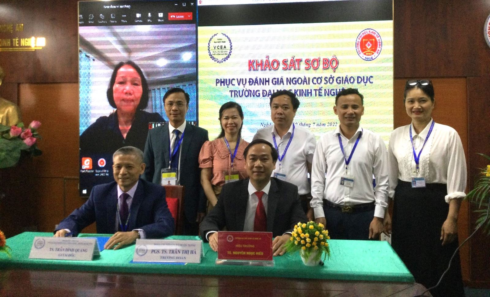 Sáng ngày 19/7/2022, Đoàn đánh giá ngoài và Trung tâm Kiểm định chất lượng giáo dục - Trường Đại học Vinh (KĐCLGD - ĐHV) đã phối hợp với Trường Đại học Kinh tế Nghệ An thực hiện khảo sát sơ bộ phục vụ ĐGN cơ sở giáo dục Trường Đại học Kinh tế Nghệ An.